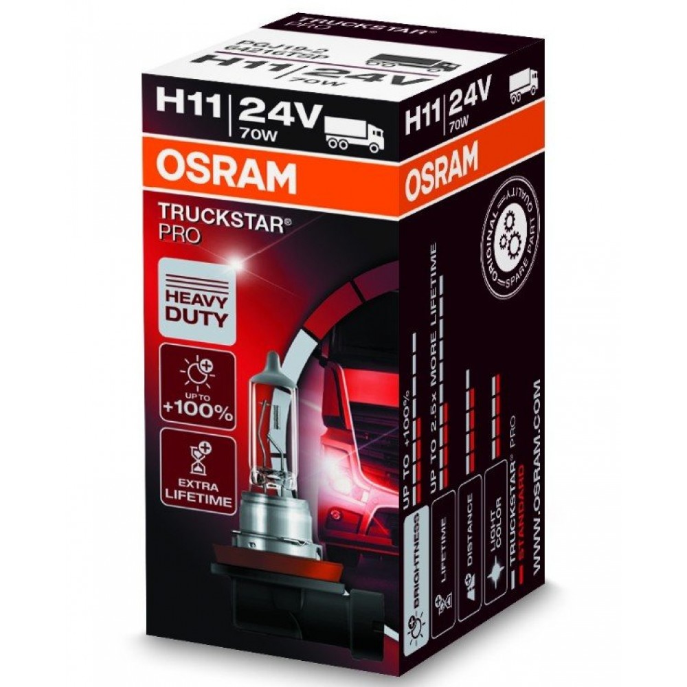 Переваги 64216TSP-FS OSRAM Лампа H11 24V 70W PGJ19-2 TRUCKSTAR PRO 64216TSP