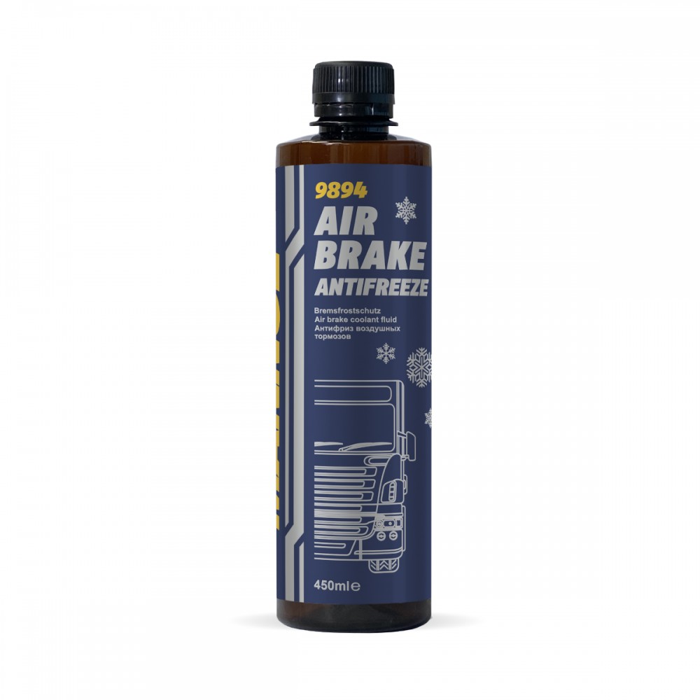 MANNOL Air Brake Antifreeze 9894MANNOL Air Brake Antifreeze 9894 – це високоефективний антифриз для пневматичних гальмівних систем, створений на основі аліфатичних спиртів з додаванням антикорозійних присадок. Він забезпечує надійний захист від замерзання, запобігає утворенню кристалів льоду та гарантує стабільну роботу гальмівних механізмів за будь-яких погодних умов.Властивості та переваги Запобігає утворенню льоду у гальмівних шлангах, ресиверах та інших елементах пневматичної системи. Містить спеціальні антикорозійні компоненти, що забезпечують захист від іржі та корозії. Чудово змащує вентилі та гальмівні клапани, зберігаючи їхню чистоту та продовжуючи термін служби. Перешкоджає затвердінню гумових ущільнень, зберігаючи їхню еластичність і герметичність. Звязує конденсат і вологу, що гарантує стабільну та безпечну роботу гальм у будь-яку пору року. ЗастосуванняMANNOL Air Brake Antifreeze 9894 призначений для використання в пневматичних гальмівних системах, що мають резервуар для осушувача повітря. Підходить для: Легкових автомобілів. Магістральних тягачів. Автобусів. Позашляхової техніки (будівельна, гірничодобувна, сільськогосподарська). Спеціалізованої техніки. Перед використанням рекомендується ознайомитися з інструкцією виробника гальмівної системи та дотримуватися всіх вимог експлуатації.MANNOL Air Brake Antifreeze 9894 – це ефективний засіб для захисту та збереження працездатності пневматичних гальмівних систем. Він гарантує безпечний рух, зменшуючи ризик несправностей, пов’язаних із замерзанням вологи в системі. Надійний вибір для професійного використання у важких умовах експлуатації.
