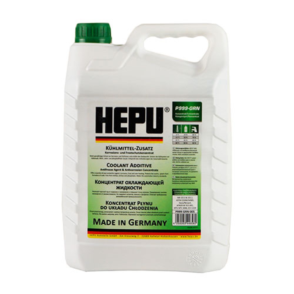 Концентрат антифризу HEPU зеленийHEPU G11 зелений -80 ° C P999-GRN 1,5 л - Антифриз. Нормальне функціонування двигуна авто та його елементів можна забезпечити лише за допомогою використання антифризу преміум-класу.Даний антифриз класу G11 добре захищає систему охолодження, утворюючи надежну захисну кулю на поверхнях. Антифриз має антикорозійні властивості, захищає від кавітаційного руйнування.Переваги використання антифризу: не допускає піноутворення, має хороші технічні характеристики, що забезпечує довготривалу хорошу захист системи двигуна.За допомогою використання цього антифризу забезпечується стабільне функціонування рухової системи. Антифриз побудований на основі передових технологій, відрізняється високою хімічною стабільністю та високою теплопровідністю.Базові компоненти даного антифризу це комбінація етиленгліколю та силікатних присадок, які забезпечують надійний захист системи охолодження автомобіля.Надійні спеціальні присадки які є у складі антифризу забезпечують хорошу мастило системи охолодження, запобігають розсихання та зміну структури гумових та пластикових елементів (ущільнювачі тощо), чим сприяють продовженню терміну їх корисної дії.