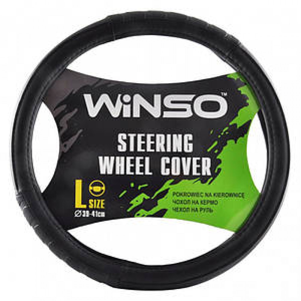 Чохол на кермо WINSO, розмір L (39-41см), екошкіра, колір чор. з сір. елем. і перф, на основі білої гуми 140330