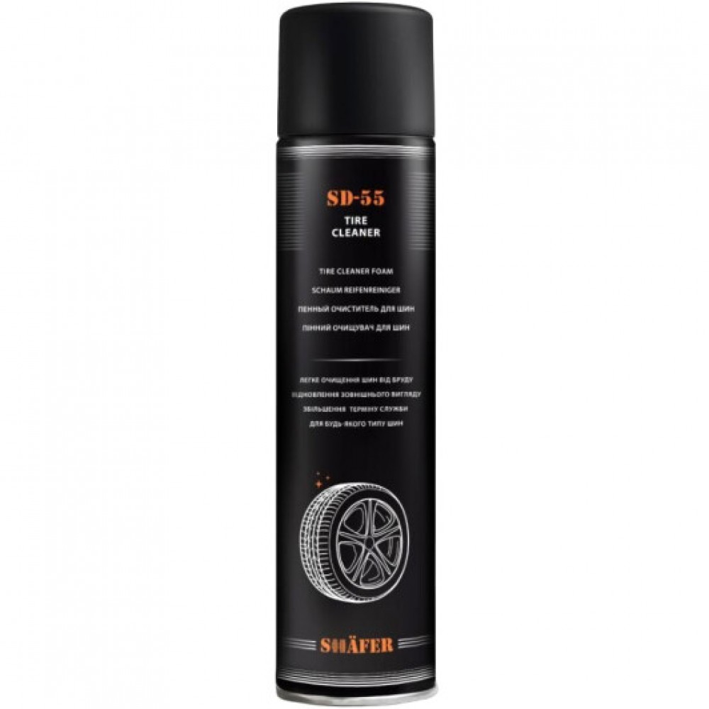 Пенний очисник для шин SHAFERПенний очисник для шин SHAFER — це високоефективний засіб, спеціально розроблений для швидкого і якісного очищення автомобільних шин від бруду, пилу та інших забруднень. Завдяки унікальній пінні формулі, цей очисник легко наноситься і ефективно проникає в пори гуми, глибоко очищаючи її поверхню.Особливості: Пінна формула: Забезпечує густе і стійке пінне покриття, яке не тільки ефективно видаляє бруд, але і тримається на поверхні для покращення очищуючого ефекту. Швидке очищення: Дозволяє швидко та легко вивести шини у первозданний вигляд, видаляючи сліди дорожнього пилу, сажі та інших забруднень. Глибоке проникнення: Проникає в пори гуми, допомагаючи відновити природний колір та блиск шин. Простий в застосуванні: Зручний аерозольний балон дозволяє рівномірно розпилити піну на всю поверхню шини, забезпечуючи економічне використання засобу. Універсальність: Підходить для всіх типів автомобільних шин, включаючи літні та зимові. Використання: Очистка поверхні: Переконайтесь, що поверхня шини не містить видимого бруду чи пилу. Розпиліть піну: Рівномірно нанесіть пенний очисник на всю поверхню шини, тримаючи балон на відстані приблизно 15-20 см. Дочекайтеся дії: Залиште засіб працювати протягом декількох хвилин. Очистіть щіткою: При необхідності використовуйте мяку щітку. Змийте водою: Добре змийте шини водою для видалення залишків пінного очисника. Пенний очисник для шин SHAFER — ваш ідеальний спутник для догляду за автомобільними шинами, надаючи їм чистоту та природний вигляд.