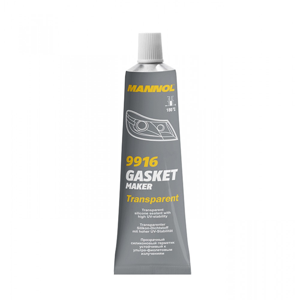 Герметик силикіновий прозрачний Mannol 9916MANNOL Gasket Maker Transparent – високоякісний однокомпонентний силиконовий герметик, що вулканізується у стан силиконового каучуку при кімнатній температурі. Володіє відмінними клеятами і скріпними властивостями. Застосовується для склеювання та ущільнення вітрових стекол автомобіля, фар, поворотних та стоп-сигналів. Замінює гумові, паперові та коркові ущільнювачі. Стійкий до впливу мастильних речовин, охолоджуючої рідини, води. Можливе використання у роботі зі склом, пластиком, керамікою та алюмінієм. Легко наносити і залишаються гнучкими. Після нанесення на знежирену поверхню розгладити та розрівняти, використовуючи мильну воду. Через 24 години прокладку можна піддавати навантаженню. Робочі температури від -40 °C до +180 °C (короткий час).Застосування герметика Mannol 9916 Gasket Maker Transparent:Ущільнюючі поверхні повинні бути чистими, сухими та обезжиреними. Рівномірно нанести герметик і відразу ж зєднати поверхні, не чекаючи випаровування розчинника. Після застосування на чистій та знемасленій поверхні згладити та вирівняти поверхню за допомогою мильного розчину. Через 24 години прокладку можна навантажувати. Робочі температури від -40 °C до +180 °C (короткий час). Зберігати у щільно закритій оригінальній упаковці в сухому місці при температурі від +5°С до +25°С.