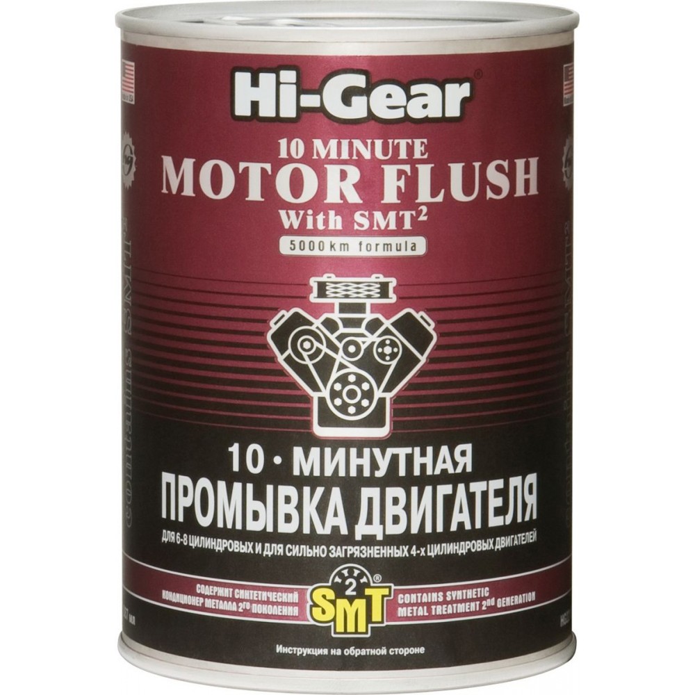 Hi-Gear 10-ти хвилинна промивка двигуна призначена для очищення 6-8 циліндрових двигунів, а також для сильно забруднених 4-циліндрових. Цей засіб ефективно видаляє відкладення, нагар та інші забруднення, що накопичилися в системі змащення. Використання промивки допомагає відновити нормальну роботу двигуна, покращує його продуктивність і знижує витрату пального. Процес промивання займає всього 10 хвилин, що робить його зручним у використанні. Рекомендується використовувати перед заміною олії для досягнення максимального ефекту.