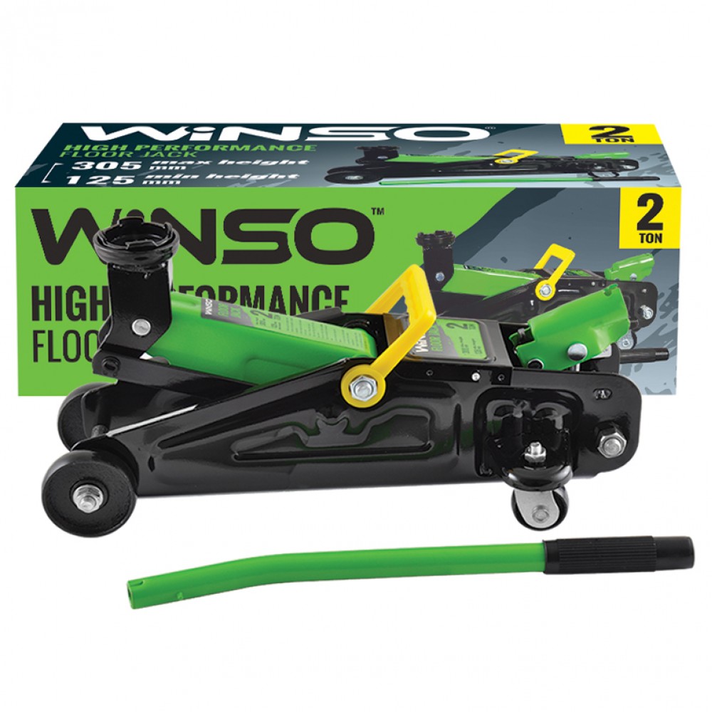 Домкрат подкатний Winso 2т 6,3 кг 125-305мм 171650Домкрат підкатний. Призначений для підйому авто-, мототехніки, витримує навантаження до 2 т.ергономічний дизайн робить домкрат максимально комфортним у використанні. Зручний для експлуатації і транспортування в обмеженому просторі завдяки наявності 4 коліс. Робочий механізм передбачає плавне підняття-спуск вантажу.Основні переваги:* Можливість роботи з автомобілями з низьким кліренсом* Можливість високої продуктивності роботи при меншому робочому зусиллі* Міцна конструкція завдяки 100% матеріалів* Легкість в застосуванні* Збереження мобільності в обмеженому просторі* Механізм запобігання можливих перевантажень* Плавний робочий хідВисота підйому 125-305 мм.