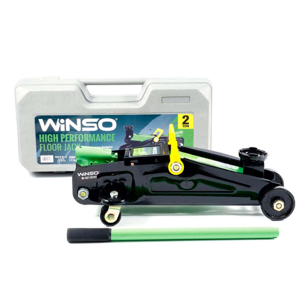 Домкрат гідравлічний телескопічний підкатний WINSO 2тГідравлічний домкрат 171610 від Winso – це необхідний помічник для легкого підняття кузова автомобіля. Характеризується пристрій зручним форматом виконання і досить високою висотою підхоплення в парі з якісною збіркою.Домкрат відноситься до підкатного типу, яким зручніше і легше підняти автомобіль, за умови рівної поверхні, на якій стоять домкрат. Встановивши і розпочавши роботу з пристроєм, ви приємно здивуєтеся тому, як впевнено вона підніме ваш легковик, завдяки можливості максимальної вантажопідйомності номіналом 2 т. Висота підкату досить низька і становить 125 мм, пролізе практично куди завгодно. Максимальна висота підйому складає 300 мм, чого з лишком вистачає для більшості легкових авто. Сам домкрат важитиме солідні 6 кг, що дає йому плюс стійкості на поверхні.Гідравлічна система домкрата працює як часник і стабільно перекачує робочу рідину з резервної камери у робочу склянку. За рахунок цього в ємності піднімається тиск, і вона починає виштовхувати поршень. Подібна система забезпечує мінімальні зусилля з боку людини і велику жорсткість, надійність утримання.Корпус виготовлений з міцного металу з ергономічними особливостями конструкції. Рукоятка має прогумований наконечник, покращуючи зчеплення рук з інструментом. Зберігається домкрат у міцному пластиковому кейсі.