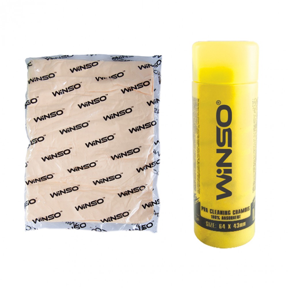 Ганчірка WINSOТряпка WINSO PVA (замша) в тубусі, маленька розміром 64*43 см, представляє собою високоякісний аксесуар, розроблений для ефективного прибирання поверхонь. Виготовлена з міцного матеріалу, ця замшева тряпка має властивості супер абсорбції, що дозволяє їй швидко та ефективно висмоктувати воду.Основні характеристики:1. Матеріал: Замша. Міцний і довговічний матеріал, який забезпечує високу ефективність у поглибленні вологи.2. Розміри: Розмір 64*43 см робить тряпку ідеальним інструментом для робіт в труднодоступних місцях.3. Колір: Жовтий. Яскравий і помітний колір робить тряпку легко відрізняємою і привабливою.4. Тип упаковки: Тубус. Дозволяє зручно зберігати і транспортувати тряпку, запобігаючи випадковому забрудненню.5. Застосування: Відмінно підходить для швидкого витирання зайвої вологи з поверхонь. Ефективно висмоктує воду, не залишаючи слідів, плям або розводів.Тряпка WINSO PVA в тубусі - це надійний інструмент для підтримання чистоти і блиску на поверхнях, забезпечуючи швидкий і безпроблемний процес прибирання!