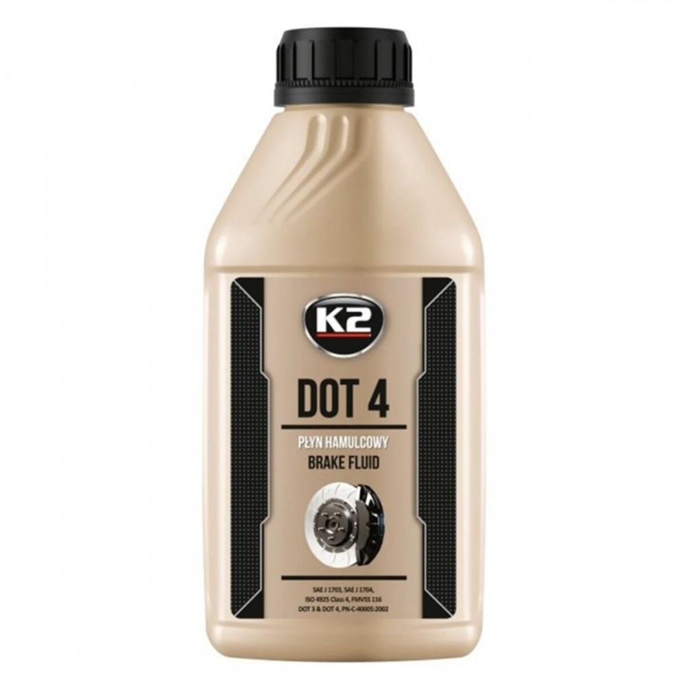 K2 DOT 4 – це високоякісна гальмівна рідина, призначена для використання в автомобільних гальмівних системах. Вона відповідає стандарту DOT 4, що забезпечує відмінні характеристики при високих температурах і стійкість до вологи. Рідина має низьку температуру замерзання, що робить її надійною в умовах холодного клімату. K2 DOT 4 підходить для всіх типів легкових автомобілів і вантажівок, що використовують гальмівні системи на основі гліколю. Упаковка об'ємом 500 мл зручна для використання та зберігання. Використання цієї рідини допомагає забезпечити безпеку та ефективність гальмування.