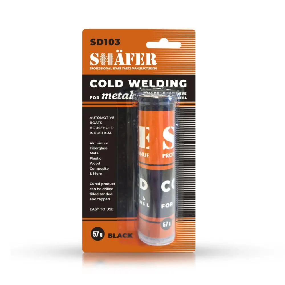 SHAFER SD103Двокомпонентний епоксидний клей із металевим наповнювачем ідеально підходить для ремонту металевих деталей, а також виробів з пластику, дерева, композитних матеріалів, алюмінію, скловолокна тощо. Забезпечує надійне тимчасове з’єднання у випадках, коли неможливо використати традиційне зварювання.Переваги: Для різних матеріалів – метал, пластик, дерево, композити, алюміній, скловолокно Зручне застосування – пластична маса легко формується та наноситься Міцність після затвердіння – можна свердлити, шліфувати та нарізати різьбу Стійкість до механічних і температурних впливівСпосіб застосування: Очистіть, знежирте, висушіть та за можливості прогрійте поверхню. Відріжте потрібну кількість матеріалу та змочіть руки водою, щоб уникнути прилипання. Ретельно перемішайте до однорідного кольору та консистенції. Нанесіть на оброблену поверхню, сформуйте необхідну деталь. Для усунення течі щільно притисніть смолу та утримуйте до початку застигання. Повне висихання – від 12 до 24 годин.Після затвердіння матеріал можна свердлити, шліфувати та піддавати механічній обробці. Холодне зварювання – це надійний і швидкий спосіб усунення пошкоджень без складного обладнання!