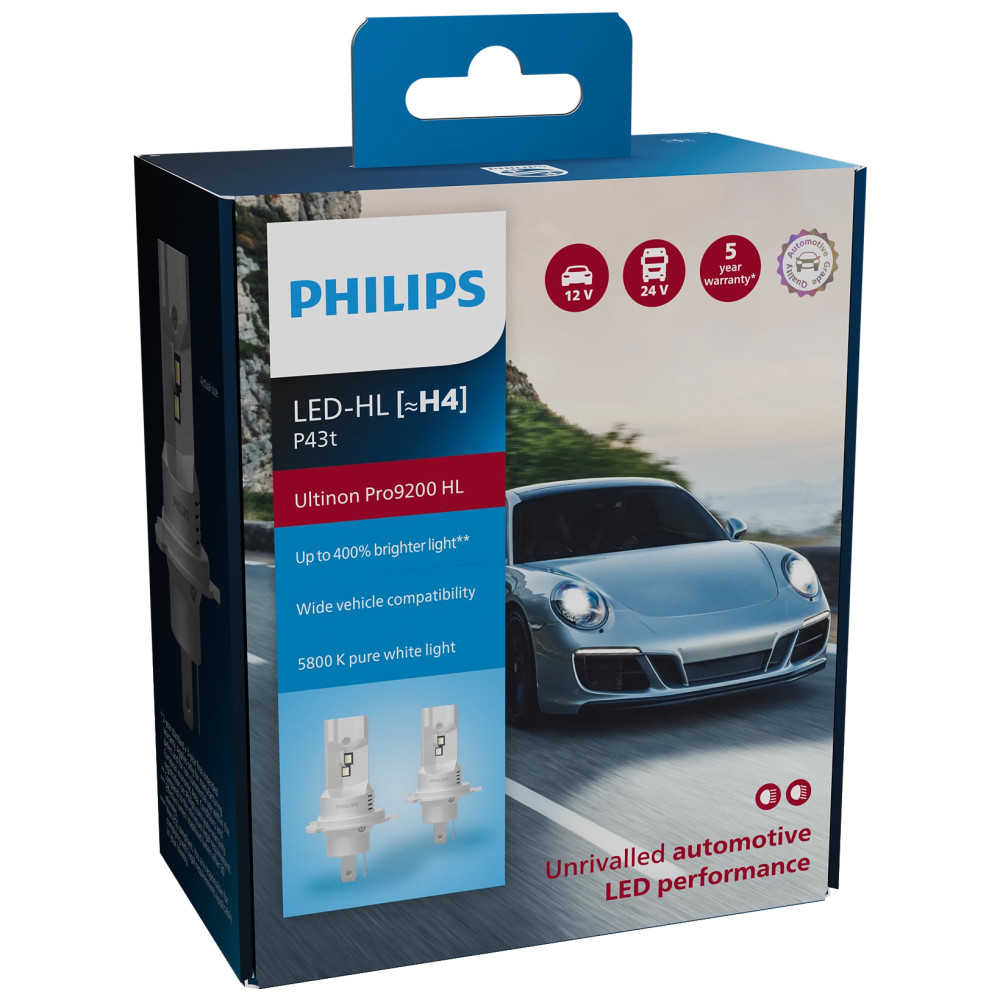 Переваги Комплект автоламп Philips LED H4 11342 U92 12/24V 18W Ultinon Pro9200 +400% X2 11342U92X2