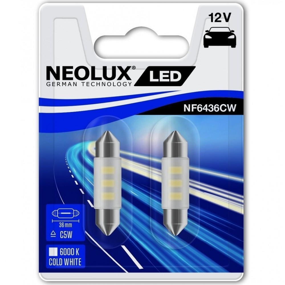 Переваги NF6436CW-02B NEOLUX Лампа C5W 12V 0.5W SV8.5-8 (36 mm) NF6436CW-02B