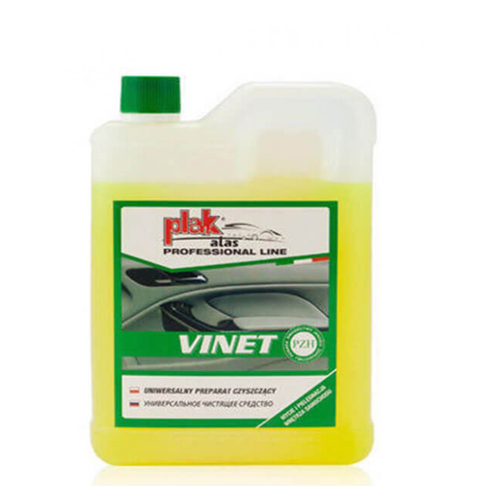 Очисник пластику Atas Vinet PlakХарактеристики очищувача Atas Vinet Plak: Відмінно очищає, видаляє жирні, масляні плями, залишки нікотину і т. д. із пластикових, деревяних деталей салону а/м, а також деталей зі шкіримиту. Володіє знезаражувальним дією, освіжає колір і не залишає розводів. Завдяки дуже низькому рівню піноутворення засіб не треба змивати. Рекомендовано до використання на поверхнях гуми, лінолеуму, металу, а також на лакованих та емальованих поверхнях. Може використовуватись для знежирення верстатів, бензонасосів та іншого обладнання. Виробник: ATAS S. r.I. (Італія)Спосіб використання Atas Vinet Plak: Продукт готовий до використання. Розпорошити на поверхню, протерти губкою чи замшею.