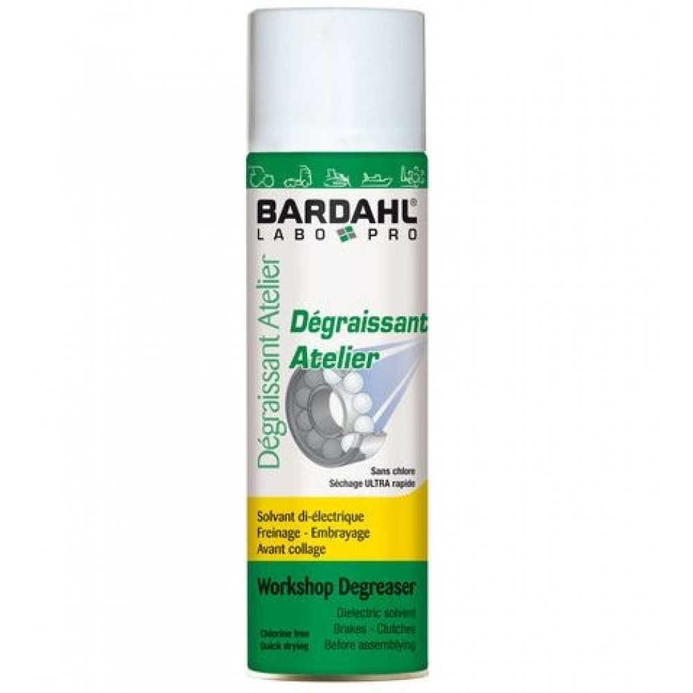 Очищувач-знежирювачах BARDAHL Dégraissant datelier аерозольний 0,5 л 1402BARDAHL Dégraissant datelier — знежирюючий спрей для металевих деталей. Він також дуже добре розчиняє стійкі загрязнення.Переваги Швидке висихання (лише кілька секунд). Підходить для металів, пластмас, скла і т.д. Без хлору.