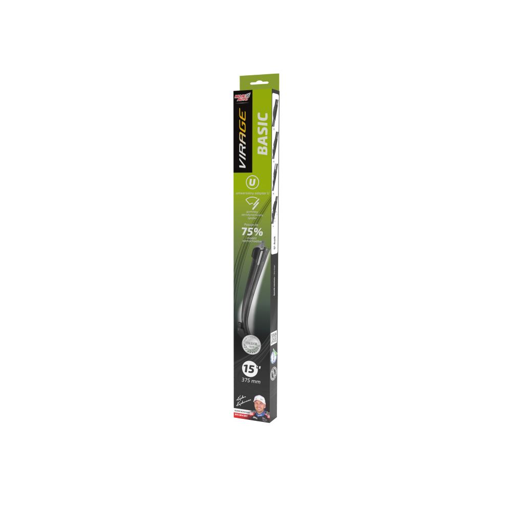 Склоочисники безкаркасні VIRAGE 375мм - 15 92-014BЩітки ідеально підходять для всіх сезонів та погодних умов. Призначені для витирання води з лобового скла легкових автомобілів, фургонів, вантажівок. Завдяки універсальному адаптеру підходять для більшості автомобілів (близько 75%).Доступні у 12 розмірах. Графітовий каучук. Висока продуктивність. Довгий термін служби. Легка та швидка збірка.Особливості серії BASIC:пластиковий щиток гнізда адаптерагумовий спойлер накладень по частинах із пластиковими накінечникамизакінчення з пластиковими кришками,приваблива ціна