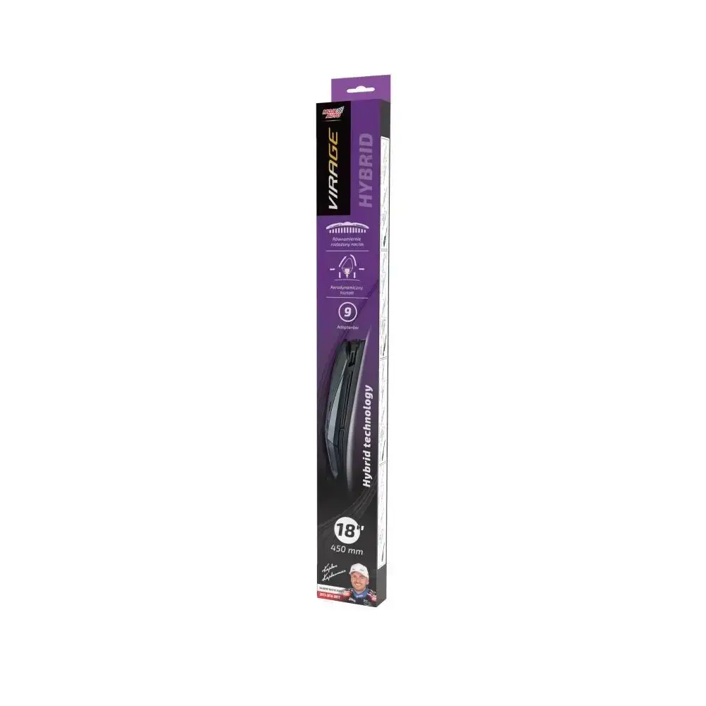 Щітки склоочисника VIRAGE Hybrid 450мм - 18 92-H18Гібридні автомобільні склоочисники – це низькопрофільні елементи з повністю закритою та інтегрованою з каркасом гумовою щіткою. Гібридні щітки склоочисників мають переваги перед звичайними і безкаркасними склоочисниками. Завдяки ним водій може насолоджуватися тихою роботою, відмінним тиском і дуже низькими втратами, викликаними поривом вітру під час водіння.Особливості серії HYBRID підходить до 95% моделей автомобілей рівномірний тиск, аеродинамічна форма гума з тефлоновим покриттям 9 адаптерів