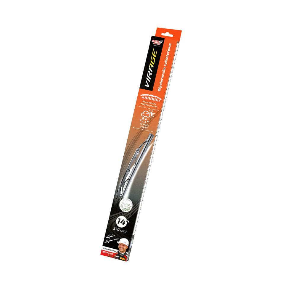 Склоочисники каркасні VIRAGE 350мм - 14 92-S14Якісні універсальні класичні щітки склоочисника. Підходять як до легкових, так і до вантажних автомобілів. Щітка склоочисника виготовлена із натурального каучуку. Каркас зроблень з товстої оцинкованої сталі, що покрита захисною кулею від ультрафіолетових променів та корозії. Щітки забезпечують добру видимість цілий рік.Добре витирають по всій довжині в обох напрямках завдяки металевим зєднанням, що забезпечують відмінний тиск на лобове скло. Склоочисники завдовжки більше 53 см мають до 8 точок тиску. Пятнадцять розмірів щиток від 27 см до 65 см!Особливості:відмінна видимість протягом усього рокустійкість до корозії та UV-випромінюваннярівномірний тиск по всій довжиніне залишає слідів