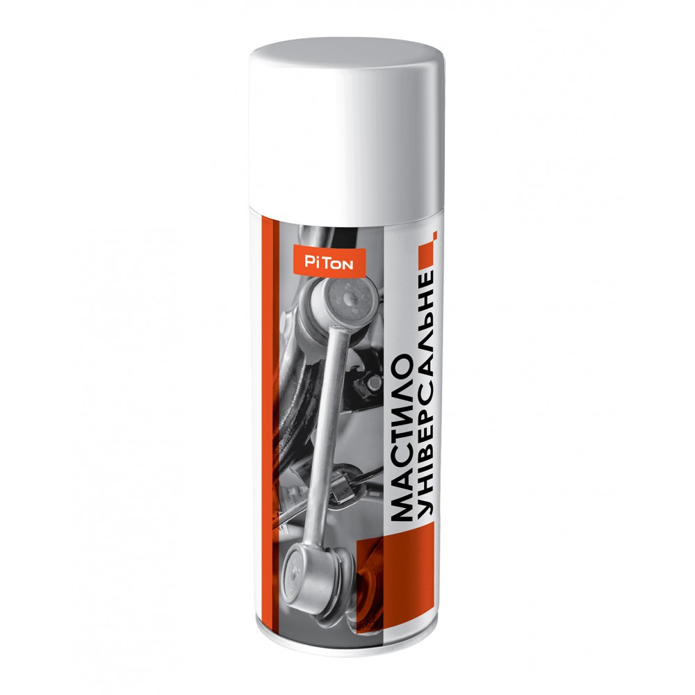 Універсальне мастило PiTonУніверсальне мастило PiTon - надійний помічник для комплексного обслуговування різних вузлів і механізмів - очищує, змащує, захищає від корозії. Застосовується для ремонту та обслуговування автомобілів, мотоциклів, моторолерів та інших транспортних засобів. Незамінний для догляду та захисту промислового обладнання, полегшує швидке і безпечне розєднання залиплих і заклинених вузлів будь-якого типу складання. Спеціальна насадка полегшує роботу в ускладнених місцях і забезпечує точне нанесення.Основні переваги: Розчинення іржі та накипу: Ефективно розчиняє іржу та накип, усуває рипіння. Витіснення вологи та запобігання замерзанню: Забезпечує витіснення вологи, запобігає замерзанню. Поновлення рухливості іржавілих нарізних з’єднань: Покращує рухливість приіржавілих нарізних зєднань. Полегшення монтажу та демонтажу: Забезпечує полегшення монтажу та демонтажу вузлів і деталей. Зменшення тертя та спрацювання: Послаблює тертя та спрацювання механізмів. Гарантований антикорозійний захист: Забезпечує надійний захист від корозії. Нейтральність до лакофарбових покриттів, пластику, дерева: Безпечний для лакофарбових покриттів, пластику та дерева. Не випаровується: Не випаровується, що забезпечує тривалий ефект. Спосіб застосування: Ретельно розмішайте вміст балона, струшуючи його щонайменше 2-3 хвилини. Змастіть підготовлену поверхню, наносячи мастило з відстані 10-15 см. Гарантований ефект досягається при щільному контакті речовини з поверхнею протягом 2-3 хвилин.При розєднанні особливо заїржавіх вузлів рекомендується застосувати мастило двічі з інтервалом 3-5 хвилин перед демонтажем.